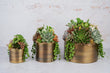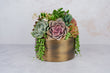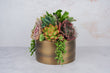 Bronze metal bowl bursting with a variety of colorful succulents. Perfect as a gift for Mother's Day, clients, teachers, hosts, and more! May also be used for wedding and event centerpieces!