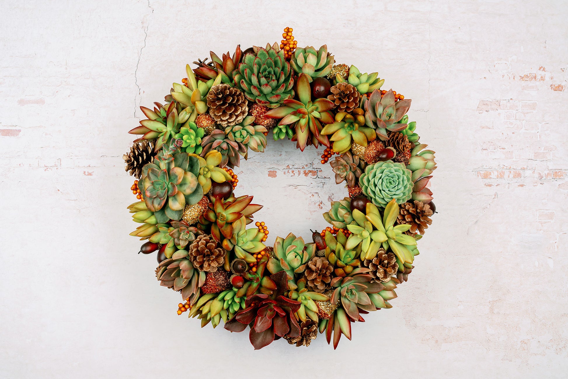 Fall Succulent Door Wreath for Thanksgiving Halloween
