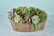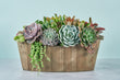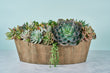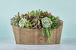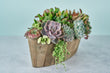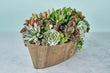 Embrace rustic charm with this wood boat succulent arrangement planter. Available in 12" and 18" sizes, it serves as a stunning centerpiece for medium to large long/rectangle tables. For a complete earth-friendly event design, mix and match with our other Woodland succulent arrangements. Perfect as a gift or for adding a touch of nature to weddings, showers, receptions, corporate events, and homes.