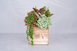 SUCCULENTS: Living succulents are attached to moss-covered floral foam with floral pins. The sphagnum moss will provide your living succulents with the nutrients they need to grow healthily. Each planter is made to order using in-season succulents grown locally in San Diego County. No two will be the same! Want something special? Please send us a message or add a note to your order at checkout.