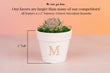 Customize your favors with an optional personalized message about the event on the second side of the pot. Many like to include monograms, the event date, and the couple’s names but the options are endless. For all custom favors, we’ll create a mock-up based on your design requests that must be approved before production can begin. We aim to get your proof message to you within 48 hours of receiving the order. Custom arrangements need a minimum of 2 weeks to be produced.