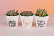 Multi-pack-bulk succulent event party favors sold in packs of 8, 12, 16, 24. Thank You text design in your choice of gold or black.